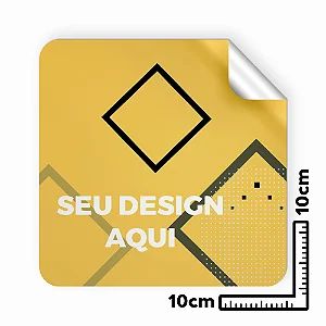 Impressão digital 4x0 cor (só frente), em vinil adesivo branco brilho, medida 10x10 cm, refile reto.